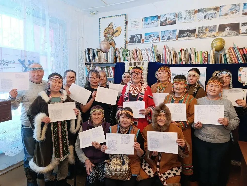 25 февраля 2026 года педагогиги МБДОУ д/с «Звёздочка», а также представители коренных малочисленных народов Севера (эвенки) приняли участие в ежегодной образовательно-просветительской акции «Всероссийский этнодиктант на языках коренных малочисленных народов Севера, Сибири и Дальнего Востока Российской Федерации. Участники мероприятия писали диктант на эвенкийском языке. Текст диктанта был посвящен теме «Моя малая родина».
